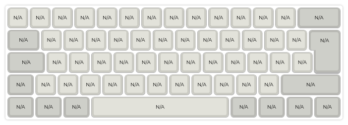 An 1800-layout keyboard as rendered in Keyboard Layout Editor, without the vertical offset applied to the arrow keys.